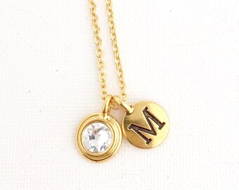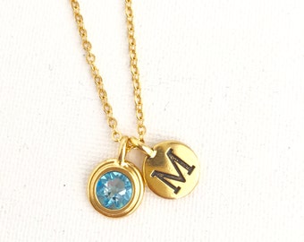 Birthstone Personalized Birthstone Necklace - Initial Necklace - Birthstone Jewelry - Monogram Necklace - Birthday Gift
