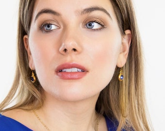 September Birthstone Earrings - September Birthday Gift - Birthstone Dangle Earrings - Birthday Stone Jewelry - Sapphire Birthstone Earrings