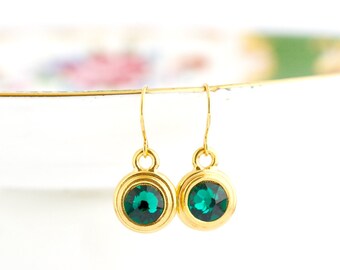 May Birthstone Earrings, May Birthday Gift, Birthstone Dangle Earrings, Gift For Daughter, Gold Birthday Stone Jewelry, Emerald Birthstone
