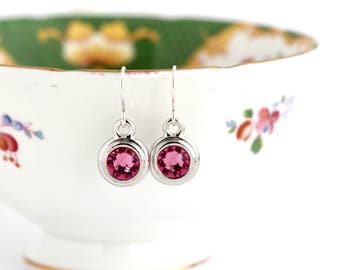 October Birthstone Earrings - Sterling SIlver Birthday Stone Jewelry - October Birthday Gift - Pink Earrings - Mom's Birthday Gift