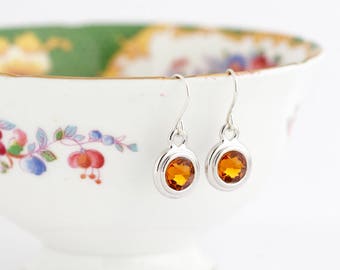 November Birthstone Earrings - Sterling SIlver Birthday Stone Jewelry - November Birthday Gift - Amber Earrings - Mom's Birthday Gift
