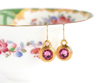 October Birthstone Earrings - October Birthday Gift - Birthstone Dangle Earrings - Birthday Stone Jewelry - Rose Birthstone Earrings