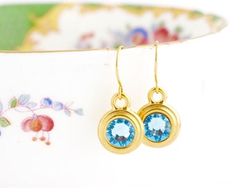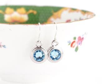 March Birthstone Earrings - Birthday Stone Jewelry - Pale Blue Birthstone - March Birthday Gift - Birthstone Dangle Earrings