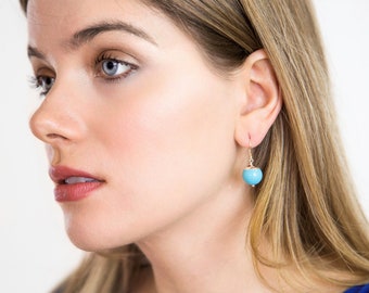 Turquoise Earrings - Sterling Silver Earrings - Dangle Earrings - Blue Jewelry - Silver Earrings - Simple Earrings - Gift For Her