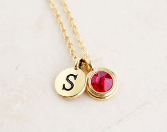 New Mom Gift - Initial Necklace - Initial Charm - Custom Birthstone Jewelry - Personalized Birthstone Necklace - Monogram - Birthday Gift