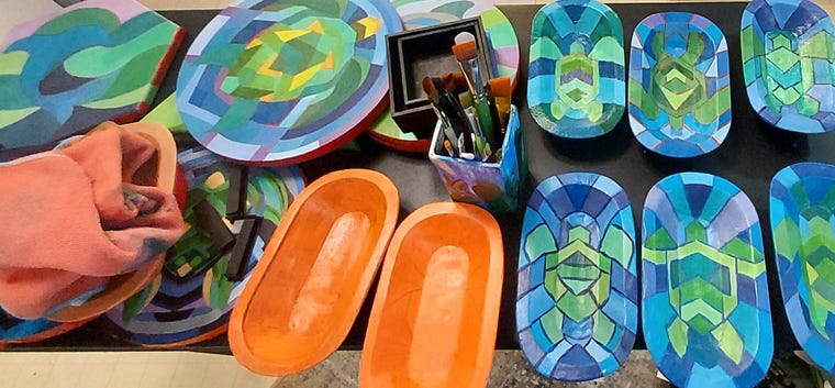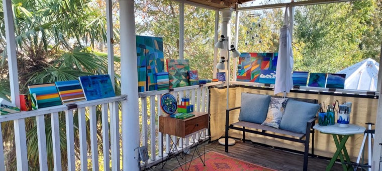 I'm a designer and fine artist working near the Outer Banks in North Carolina. My background is in illustration, woodworking, fabric design and graphic design. I'm a self-taught painter, with oils as my primary medium until recently. I've worked hard trying to learn acrylic painting techniques and am pleased with the results as I hope you are.