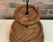 5 out of 5 starsVery nicely made tier tray, the space between middle & bottom shelf wish was a little taller for tier cups to fit under.. But fast shipping from Canda & well stained piece... Thank you, Deborah 😍👋👍