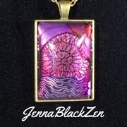 Zentangle is a meditative method of abstract drawing, and I fell in love with it. It started out as nothing but the occasional stress relief, and I drew in pen and ink with no embellishments. Then I started learning how to shade with graphite to lend depth to my drawings. Then I started learning how to color with colored pencils and markers, while still keeping the depth of shading. And then I discovered how to make pendants out of my drawings, and a monster was born.