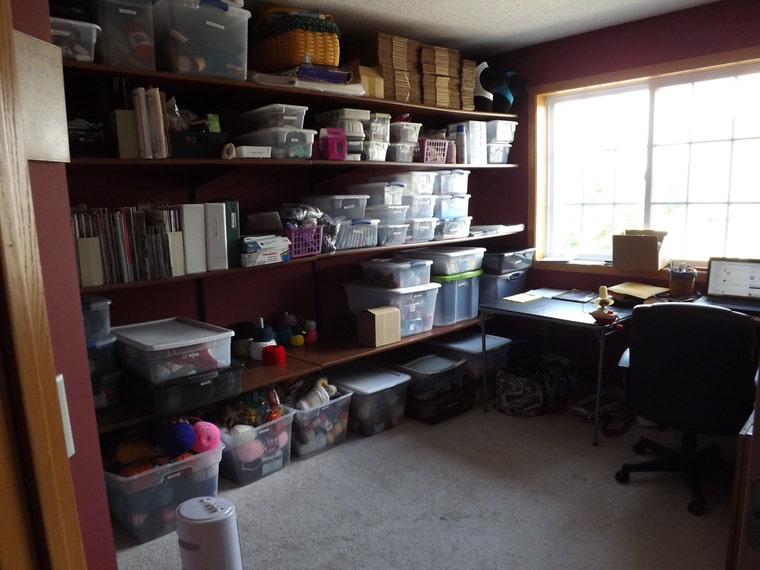 My (clean) craft room, where the yarn is stored away from kitties.
