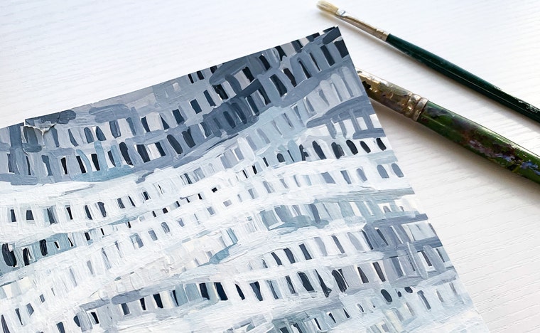 My style has evolved by leaps and bounds over the years – developing into something even more meaningful for me. These days, my practice tends to go a few different directions. I always enjoy doing minimalistic drawings utilizing lots of lines and dots to create a simple, but beautifully complex, image. The second path I tend to gravitate towards is full of creamy, heavily layered acrylic and watercolor abstract paintings. Often, I like to incorporate lots of mixed media in these pieces, including paint sticks, markers, and ink. The final route I’ve been exploring through my work is a combination of the first two – layered abstract paintings covered in lots of lines, dots, and marks. These are inspired by patterns found in the natural world or something that I am reminded of from my travels.