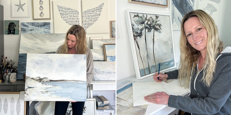 The peace and natural beauty that came with living by the ocean was always one of my biggest inspirations. I try to evoke the feeling that the beach and ocean still gives me – a sense of relaxation, calmness, happiness, and simplicity – in all of my art.