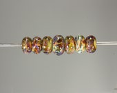 Lampwork Glass Boro Bead Set of 7 Artisan Handmade Juba Glass Transparent Green Sparkle Swirl