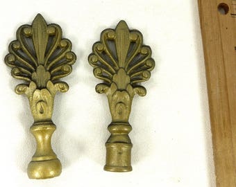 Vintage Lamp Finials Large Antique Brass 1940s Set of 2