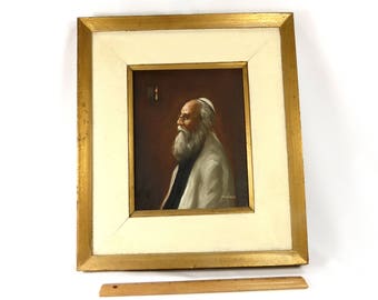 Oil Painting Rabbi Judaica David Pelbam Signed Original Wood Frame 1960s 1970s