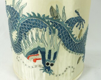 Lamp Shade Antique Dragon Asian Embroidery Fabric Cylinder Custom Made One of a Kind NYC