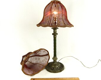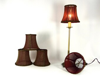 Lamp Shade Handmade Custom PAIR Oval Bell Embroidered Cranberry Red Mesh with Custom Trim
