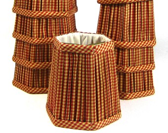 Chandelier Table Sconce Shades Red Ivory Check Custom Desig Fabric Handmade Set of 4