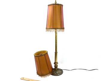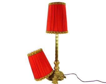 Lamp Shades PAIR Gold Silk Hand Made Small with Sheer Red Lining Long Metallic Gold Fringe