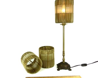 Small Shades Cylinder Table Antique Gold Custom Pleated Design Fabric Handmade Set of 3