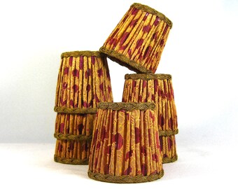 Chandelier Sconce Shades Pleated Silk Organza Fabric Gold and Red Designed and Handmade NYC Set of 7