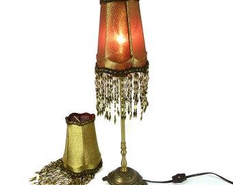 Lamp Shade Handmade Custom PAIR Octagon Bell Mesh with Custom Fringe