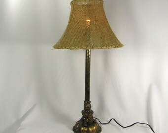 Lamp Shade Custom Double Tan Layered Burlap Bell Hand Made in NYC