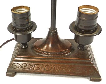 Table Desk Lamp Antique Art Deco Cast Metal 1920s Shade Custom by Judi's Lampshades