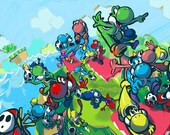 5 out of 5 starsCame in great condition, and the art is very lovely! I can tell that the artist considered every individual Yoshi (27 by my last count!) and worked to make them all unique. Quite pleased =)