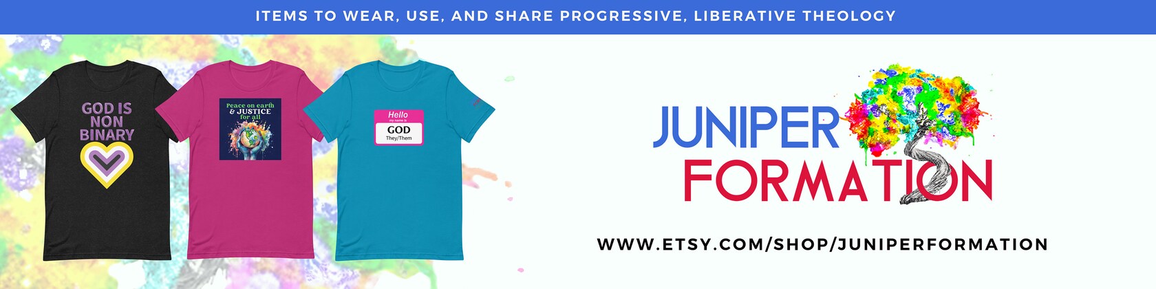 3) To support the ongoing work of Juniper Formation. The funds from each sale will go directly back into Juniper Formation ministries. Read more about our ministries at juniperformation.org or join our digital faith community at juniperformation.church. Juniper Formation is an IRS-designated 501c3 nonprofit church, and a local church of the United Church of Christ (UCC), a progressive Christian denomination.