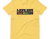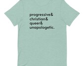 1) We saw a need to spread progressive and liberative theology and inclusion as a loving public voice for Christianity within our local communities. By creating items we can wear and share with others, we cocreate an inclusive and justice-filled world. In our research during the creation of this store, we found that there weren’t many brands creating wearable items combining liberative, progressive theology with the joy and celebration of who we are in our diversities and who we want to be as people of faith. It is our aim to share liberative theology and inclusion with each item sold, especially in the face of Christian nationalism and religious conservatism.