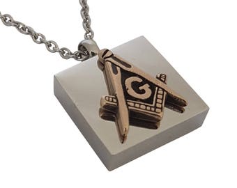 Square and Compass Freemason's Cremation Urn Memorial Capsule Pendant Necklace Steel and Bronze Custom Engraving Available - Keychain Option