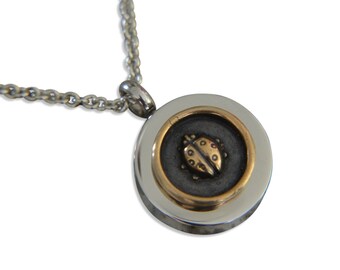 Ladybug Cremation Urn Pendant Insect Memorial Keepsake Necklace - Personalized Engraved Sympathy Urn Vial Gift - Bronze Circle Capsule