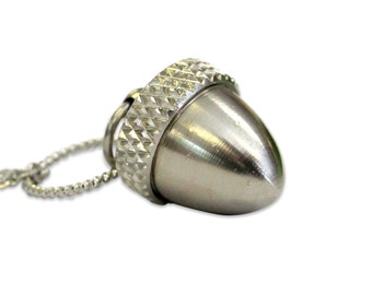 Silver Acorn Pendant Necklace Capsule Locket Vial - Stainless Steel Cremation Ash Urn Secret Stash Necklace - Personalized Pet Sympathy Gift