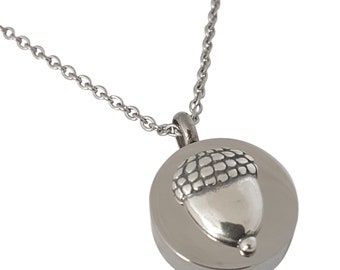 Circle Acorn Cremation Urn Memorial Capsule Pendant Necklace - Stainless Steel+Sterling Silver- Custom Engraving Available - Keychain Option