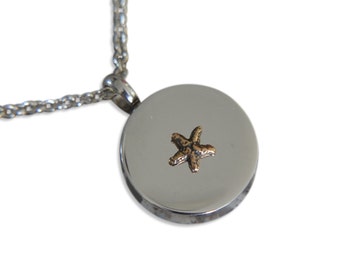 Bronze Starfish Cremation Ashes Urn - Personalized Stainless Steel Circle Memory Gift Capsule - Sea Creature Memorial Pendant Necklace