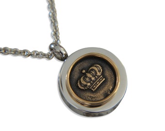 Bronze Crown Urn Pendant Memory Necklace - Personalized Memorial Ash Cremation Urn - Keepsake Bereavement Gift - Custom Engraved Capsule