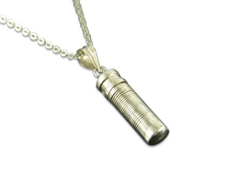 Silver Bullet Urn Pendant - Personalized Ash Urn Bullet Vial - Secret Stash Vial - Bullet Casing Jewellery - Engraved Sympathy Gift For Him