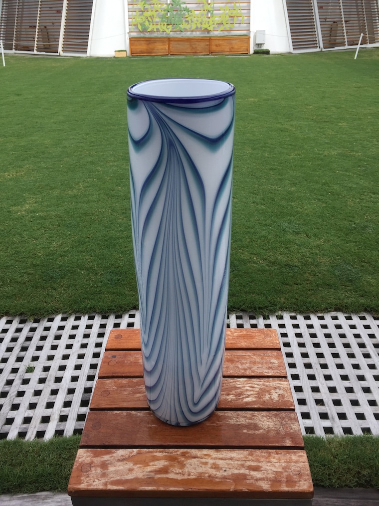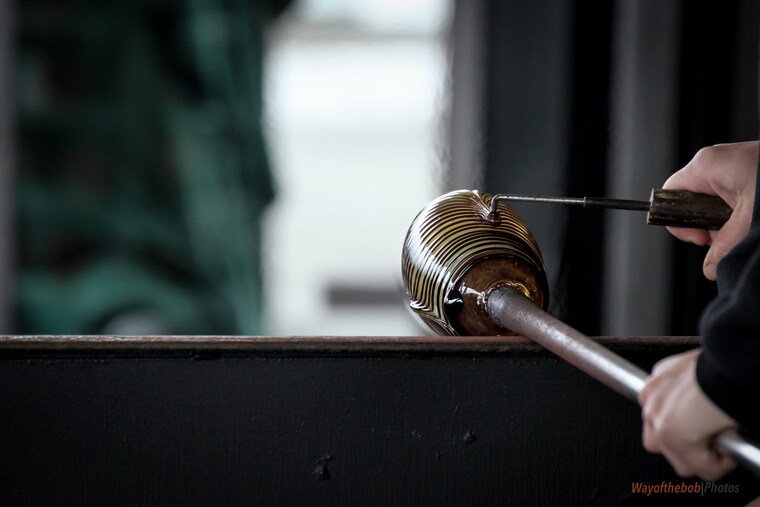 process shot. A raked piece of glass is being created. -