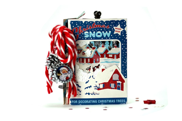 This small 4" by 6" scrapbook album features a shaker for the front cover. -