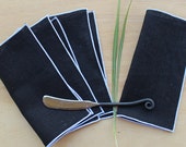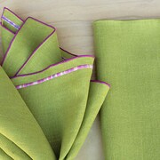 5 out of 5 starsI've bought several sets of napkins from this seller and they are all lovely and extremely well crafted. This set is no exception. I love the subtle contrast of the sage green hems with the gold linen. Shipping was very fast as well. I am a very happy customer. Thank you!