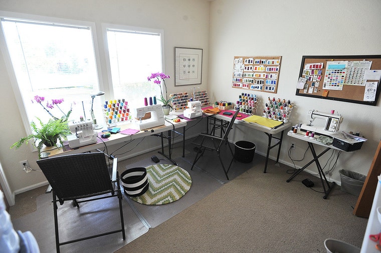 Work studio NOT always so neat and tidy because mostly we sew like crazy and the threads are flying.
