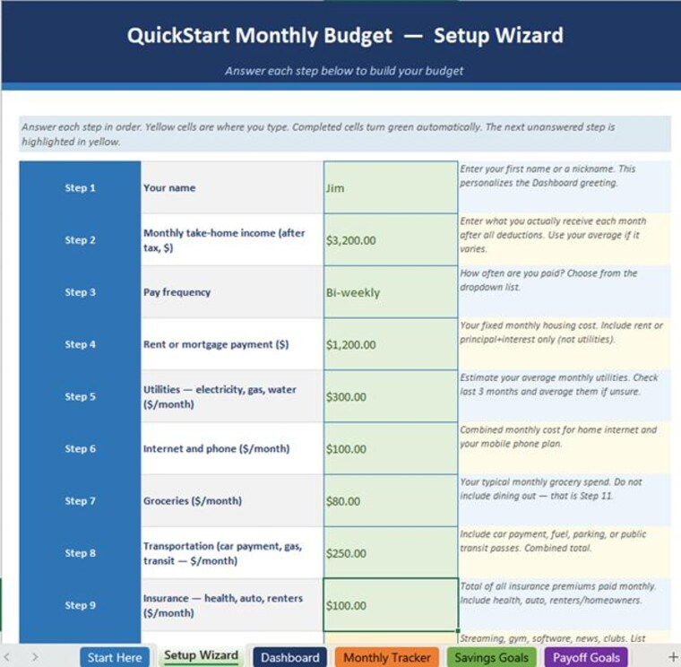 Every product includes a built-in Setup Wizard that walks you through configuration step by step. Just answer the questions and your spreadsheet builds itself. No accounting background needed, no spreadsheet skills required.