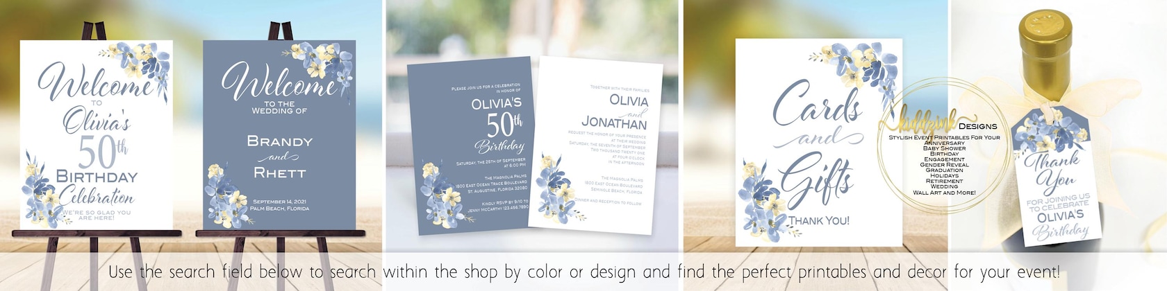 We have a large variety of 8x10 printables for all events, in many themes, and in SO many color combos! -