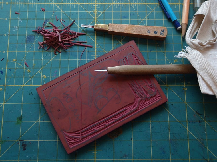 I carve each EcoCarve block by hand with fancy Japanese carving tools. -
