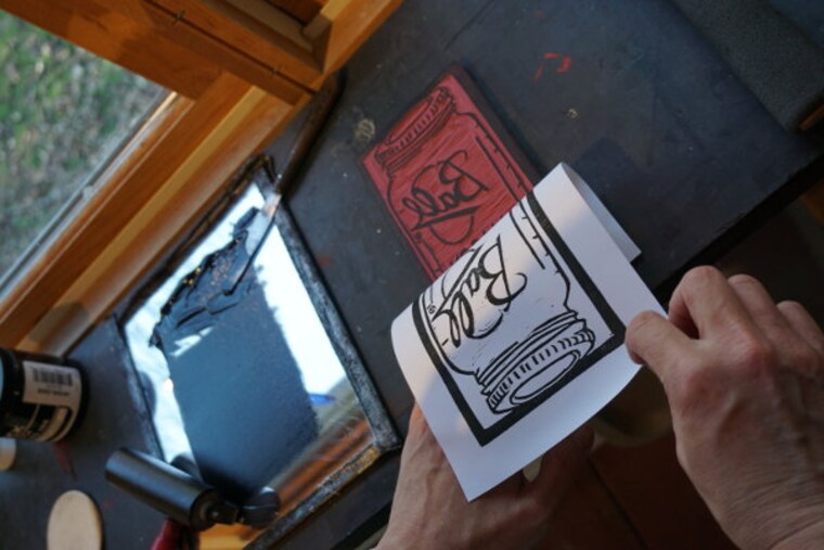 Pulling the first print is an exciting moment! Time to see whether the hours of designing and carving have paid off. -