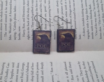 Edgar Allan Poe Book Earrings - Handmade Poe Book Jewelry - Handmade Book Earrings - Mini Poe Book Jewelry - Handmade Mini Book Earring