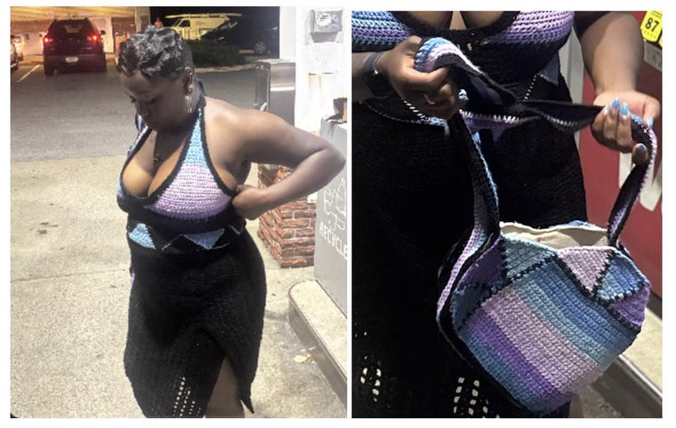 Crocheted set The halter top has a corset in the back, the skirt has a slit, and a purse to match!