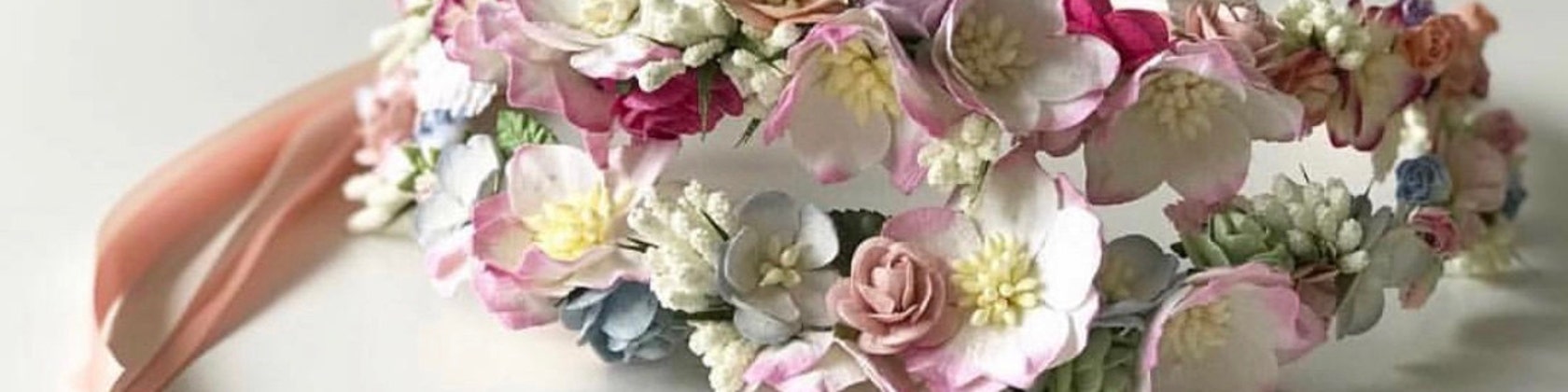 Flowers on the crowns are made of a special paper, this means they cannot get wet and are very delicate. It is recommended to store safely away from children, preferably hanging.
