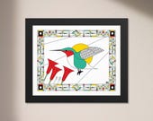 5 von 5 SternenIch liebe diesen Druck. Er passt perfekt in mein Haus im Craftsman-Stil des Mittleren Westens. Ich habe den Kolibri und die Spottdrossel inklusive Rahmen bestellt, und sie ließen sich schnell und einfach an die Wand hängen. Beim nächsten Mal werde ich aber wohl nur den Druck bestellen und ihn selbst einrahmen. Die Drucke dieser Kollektion vereinen zwei meiner Lieblingsdinge: Vögel und den Stil von Frank Lloyd Wright.