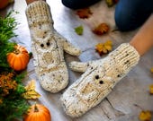 My famous owl fingerless gloves or mitts. Available in 3 sizes. You can also make your own with my pattern. -